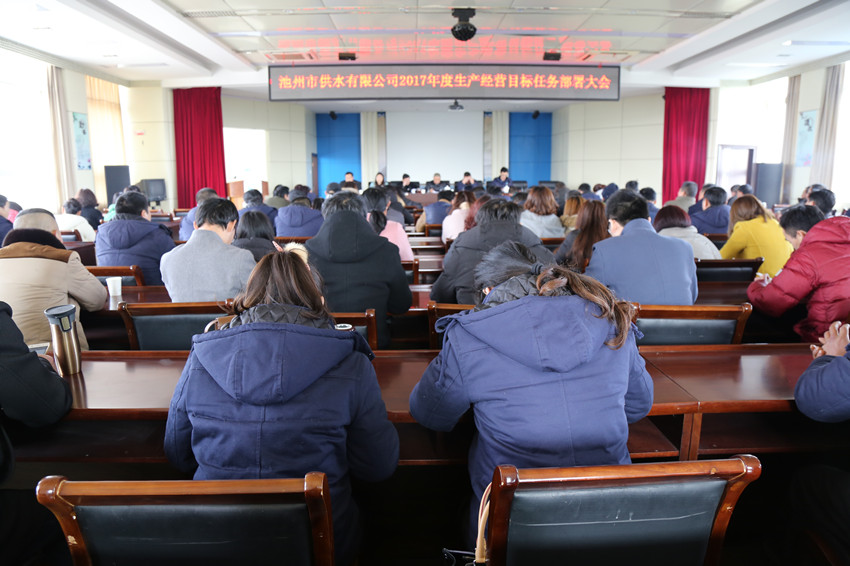 2017年2月10日,池州市供水公司在公司四樓會(huì)議室召開2017年生產(chǎn)經(jīng)營目標(biāo)任務(wù)部署大會(huì)。公司董事長(zhǎng)鐘誠、總經(jīng)理吳小平等全體高管及公司全體員工參加會(huì)議。