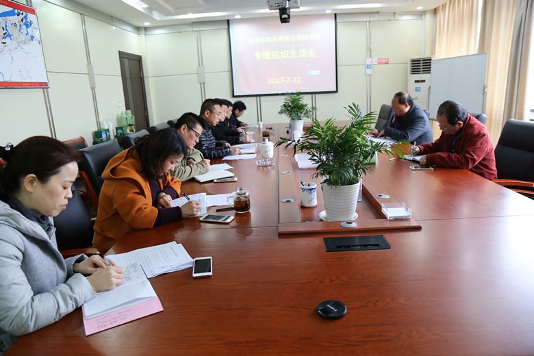 根據(jù)《池州市住房城鄉(xiāng)建委組織召開專題民主生活會和開展民主評議黨員活動方案》(池建直黨字[2017]3號)要求,2月22日下午,中共池州市供水公司支部召開了專題組織生活會,市住建委黨組副書記、副主任余祖平、市公用事業(yè)局李應友局長出席會議,指導公司支部開展組織生活會。