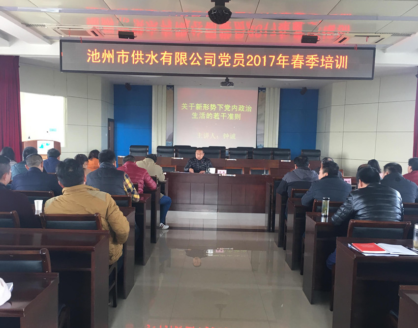 為進(jìn)一步深入學(xué)習(xí)貫徹黨的十八屆六中全會(huì)精神和習(xí)近平總書記系列重要講話,提高我司黨員整體隊(duì)伍素質(zhì),根據(jù)中共池州市住房和城鄉(xiāng)建委機(jī)關(guān)委員會(huì)《關(guān)于印發(fā)2017年市住房城鄉(xiāng)建委系統(tǒng)黨員春季培訓(xùn)工作實(shí)施方案》(池建直黨字[2017]2號(hào))要求,2月8號(hào)至17號(hào),中共池州市供水公司支部分別召開了池州市供水公司黨支部黨員春季培訓(xùn)第一、二、三、四次集中學(xué)習(xí)。