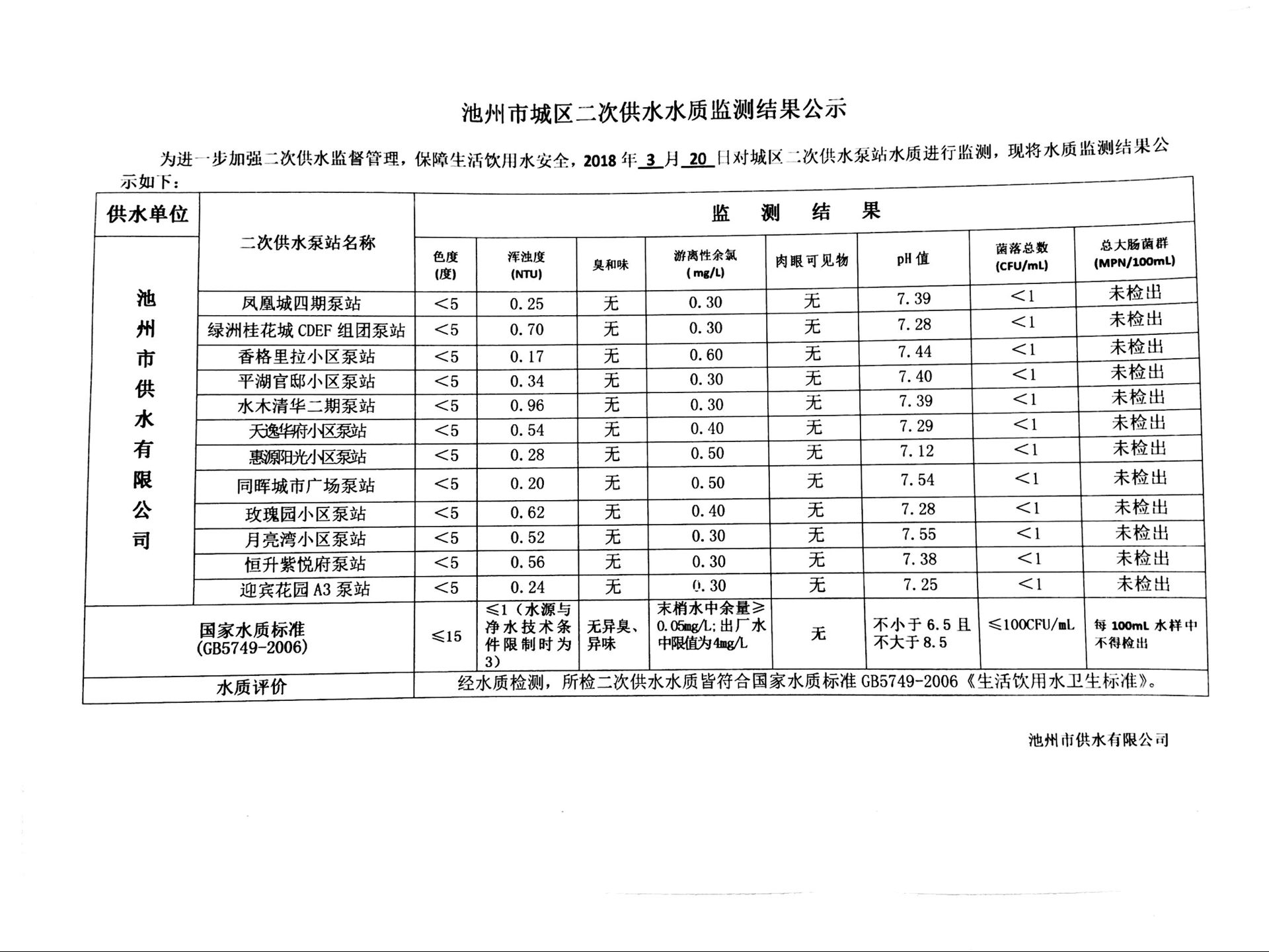 | 城區(qū)二次供水水質(zhì)監(jiān)測(cè)結(jié)果公示(2018.4.27) | |