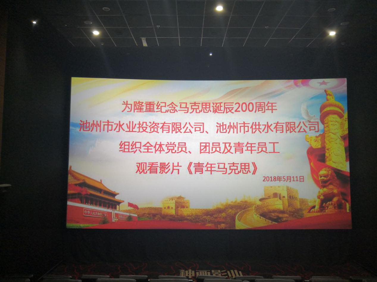為隆重紀(jì)念馬克思誕辰200周年,深入學(xué)習(xí)馬克思精神,體會(huì)《共產(chǎn)黨宣言》,2018年5月11日下午,池州市供水有限公司黨支部組織全體黨員、團(tuán)員、入黨積極分子以及青年員工觀看《青年馬克思》。