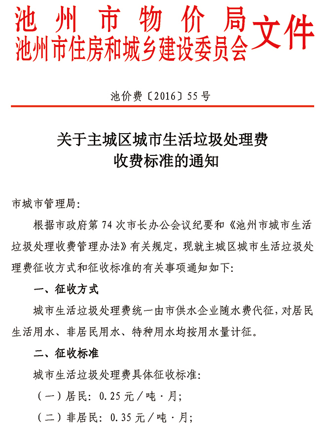 | 關(guān)于主城區(qū)生活垃圾處理費(fèi)收費(fèi)標(biāo)準(zhǔn)的通知 | |
