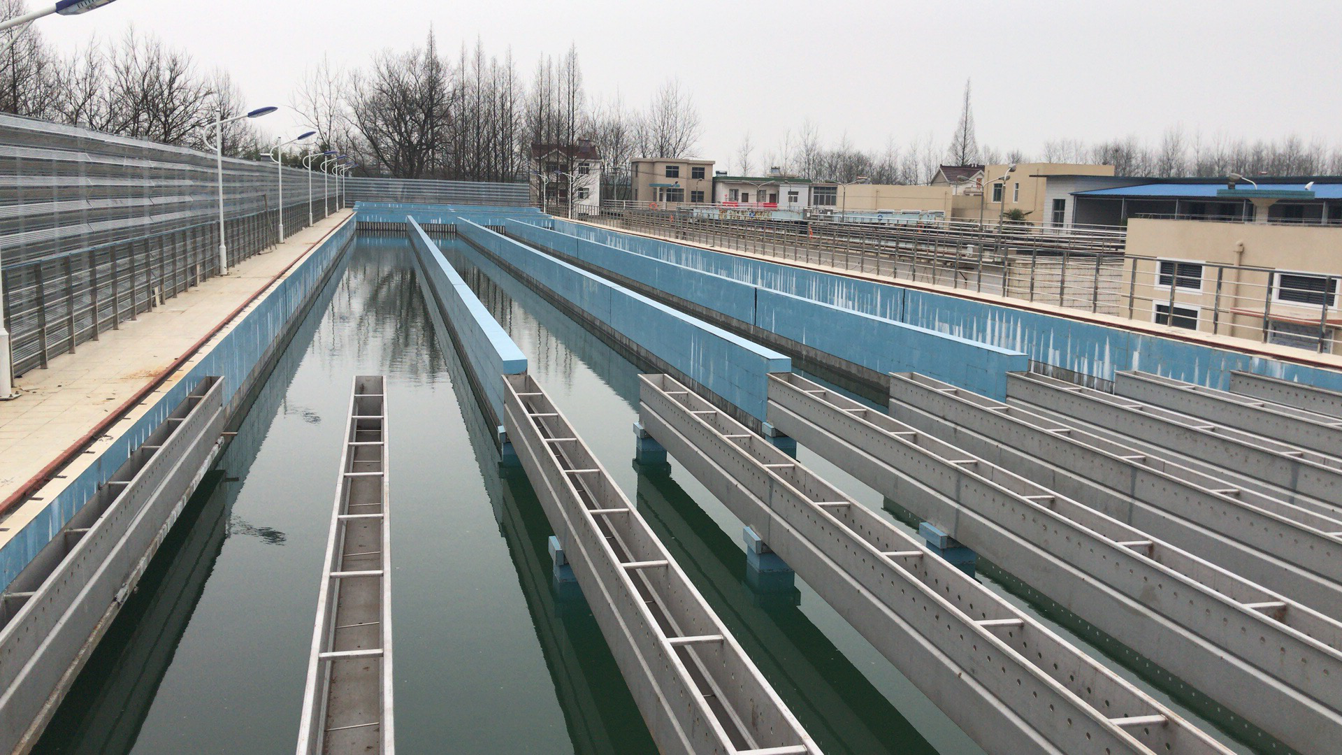 平流沉淀池是應(yīng)用顆;蛐躞w的重力沉淀作用去除水中懸浮物的一種傳統(tǒng)水處理構(gòu)筑物,也是水處理過程中一道重要的工藝流程,本項(xiàng)目中平流沉淀池總設(shè)計(jì)規(guī)模為40000m3/d,停留時(shí)間是2.1h,水流速度為12mm/s,放空時(shí)間為3h,在進(jìn)水過程中,經(jīng)現(xiàn)場觀察,水量分配均勻,折板分布合理,絮凝礬花效果良好。