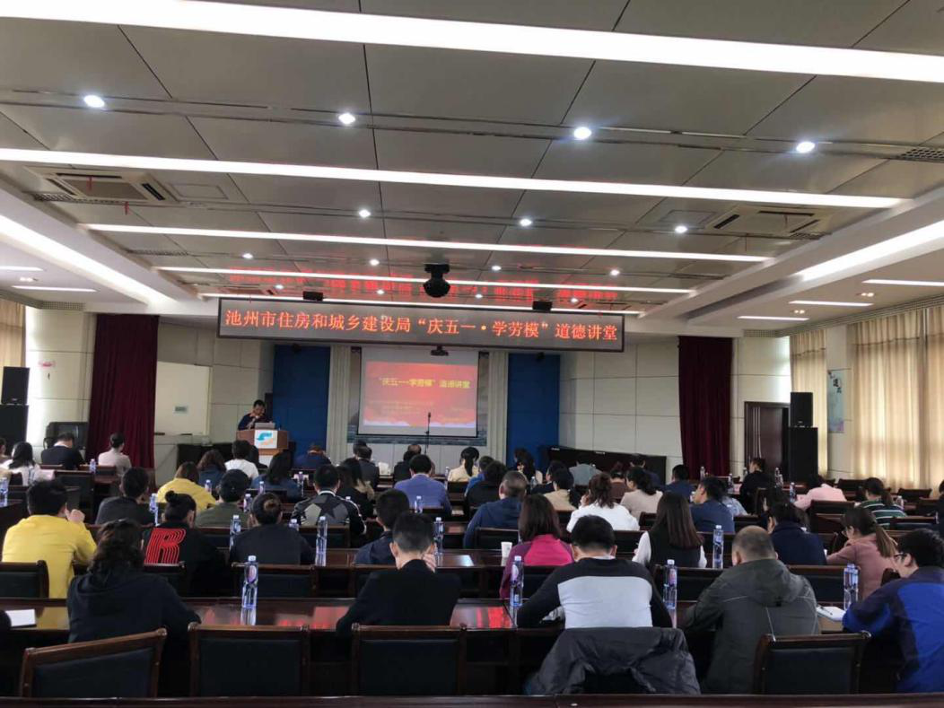 為弘揚(yáng)勞模精神、勞動(dòng)精神、工匠精神,營造學(xué)習(xí)典型、創(chuàng)先爭優(yōu)的濃厚氛圍,4月26日下午,市住房和城鄉(xiāng)建設(shè)局機(jī)關(guān)黨委、市建設(shè)建材工會(huì)主辦、市供水有限公司承辦了以“慶五一·學(xué)勞模”為主題的道德講堂活動(dòng)。池州市住房和城鄉(xiāng)建設(shè)局黨組副書記、副局長余祖平、總工會(huì)調(diào)研員趙桂萍、市文明辦副調(diào)研員王家才、市建設(shè)建材工會(huì)主席方學(xué)松出席活動(dòng),局管、局屬各單位黨員代表、團(tuán)員代表和基層工會(huì)職工代表以及房地產(chǎn)、建筑行業(yè)企業(yè)代表共計(jì)80余人參加了本次活動(dòng)。