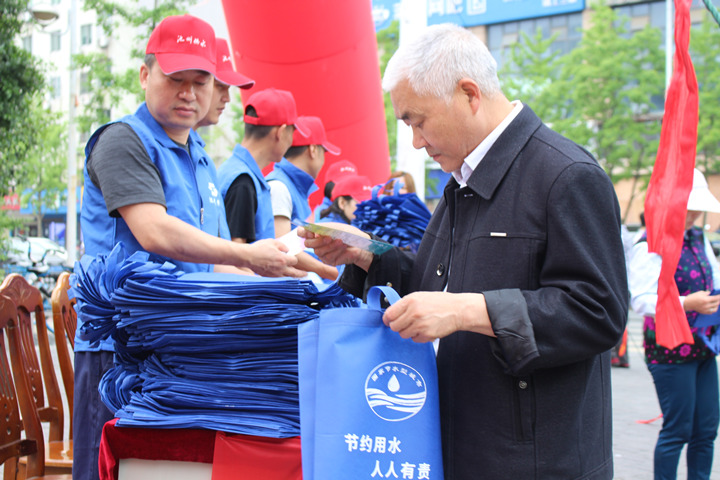 活動設(shè)置了宣傳臺,志愿者們通過向來往的市民分發(fā)節(jié)水宣傳資料和環(huán)保袋,講解生活中一些節(jié)約用水的小知識,提倡使用節(jié)水型生活用水器具,來往市民紛紛駐足聆聽。