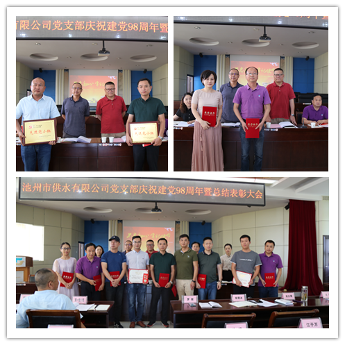 6月26日,池州市供水有限公司黨支部召開慶祝建黨98周年暨總結(jié)表彰大會。會議全面總結(jié)了一年來黨支部的各項工作,并對先進黨小組、優(yōu)秀黨務(wù)工作者和優(yōu)秀共產(chǎn)黨員進行表彰。大會由王忠榮同志主持,全體黨員、發(fā)展對象和入黨積極分子參加。建投集團黨委委員吳小平同志出席會議。
