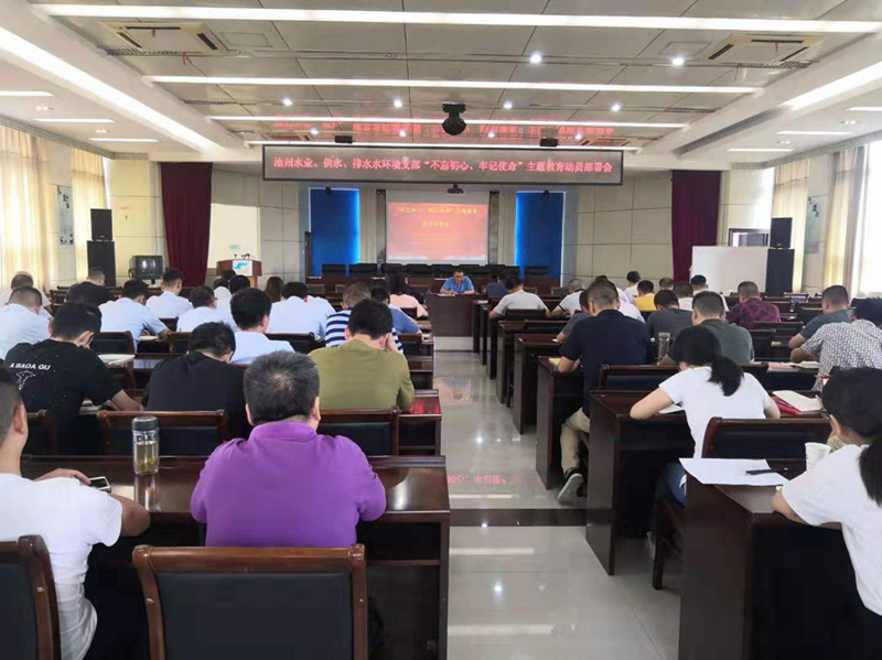 吳小平同志強(qiáng)調(diào)各支部要積極響應(yīng)集團(tuán)黨委創(chuàng)建“堅(jiān)持六化引領(lǐng),服務(wù)城市建設(shè)”黨建品牌工作。并結(jié)合公司實(shí)際,研究制定自己的特色黨建品牌,將開展主題教育活動(dòng)和公司年度重點(diǎn)工作相結(jié)合,積極落實(shí)上級(jí)黨組織的工作部署。同時(shí),要以此次主題教育為契機(jī),找出問題根源,補(bǔ)短板強(qiáng)弱項(xiàng),扎扎實(shí)實(shí)開展好這次主題教育,用主題教育激發(fā)出水務(wù)行業(yè)黨支部的凝聚力、戰(zhàn)斗力,開創(chuàng)池州水務(wù)行業(yè)發(fā)展新局面,以優(yōu)異成績(jī)迎接新中國(guó)成立 70 周年!