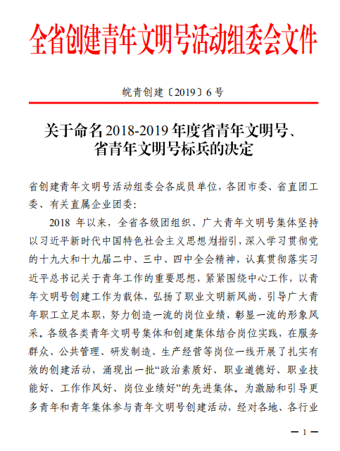 近日,安徽省青年文明號創(chuàng)建活動組委會傳來喜訊,池州市供水有限公司客服中心集體榮獲 2018-2019 年度“省青年文明號”、城東供水管理所青年集體為 2018-2019 年度“省青年文明號標(biāo)兵”榮譽(yù)稱號。