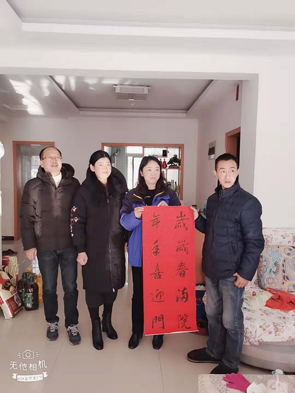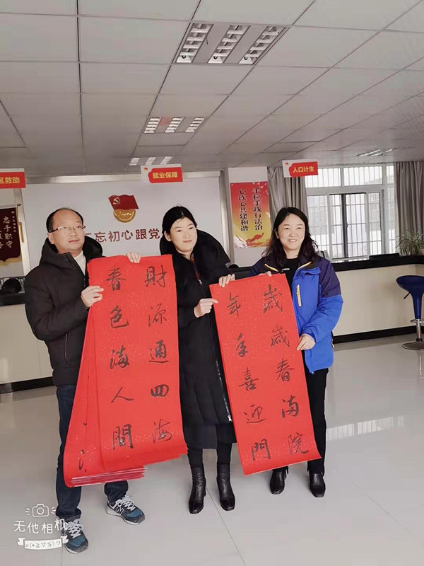 隨后,王副總一行又來(lái)到東湖路社區(qū)居委會(huì)。王副總送上公司精心準(zhǔn)備的手寫(xiě)對(duì)聯(lián)及社區(qū)幫扶共建資金,并與趙書(shū)記進(jìn)行了友好交流與溝通。