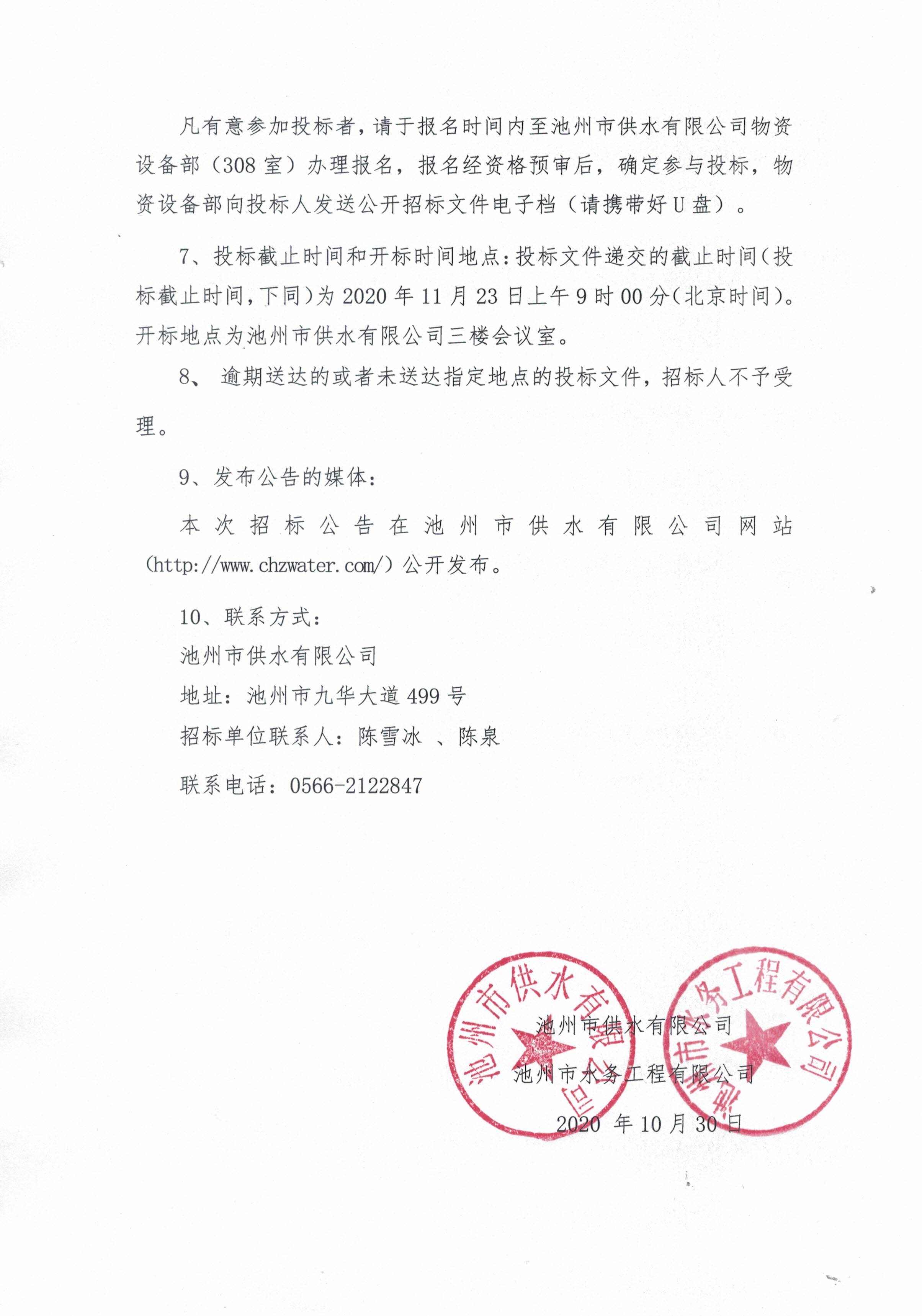 | 池州市供水有限公司、池州市水務(wù)工程有限公司2021-2022年度普通水表公開(kāi)招標(biāo)公告 | |
