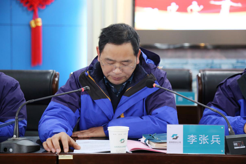 總經(jīng)理李張兵作《迎難而上 創(chuàng)新實(shí)干 譜寫新格局下健康發(fā)展新篇章》年度工作報(bào)告,從突出供水主業(yè)、內(nèi)部管理、重點(diǎn)工作、文化建設(shè)、黨建引領(lǐng)等五個(gè)方面,全面回顧、總結(jié)公司2020年各項(xiàng)工作取得的新成果。他指出2020年公司售水量突破3000萬噸歷史大關(guān),產(chǎn)銷差率取得10.93%的歷史最好成績(jī),69座老舊小區(qū)二次供水泵站改造提前完成,城鄉(xiāng)供水一體化發(fā)展取得新突破,公司喜獲安徽省第十二屆文明單位、第四屆池州市市長(zhǎng)質(zhì)量獎(jiǎng)提名獎(jiǎng)、2019年池州市雙擁優(yōu)秀單位等榮譽(yù)稱號(hào),公司黨支部黨建品牌摘得市屬國(guó)有企業(yè)黨建品牌評(píng)審大賽一等獎(jiǎng)桂冠,公司發(fā)展呈現(xiàn)一派新氣象;同時(shí),他指出公司仍然面臨外部環(huán)境不確定、內(nèi)部活力待進(jìn)一步激發(fā)等的困難和挑戰(zhàn)。他要求,2021年,公司上下要?jiǎng)哿ν、?jiān)定信念、保持定力,不斷提升經(jīng)營(yíng)管理、供水保障、用戶服務(wù)、業(yè)務(wù)拓展、創(chuàng)新發(fā)展能力,實(shí)施“131”工程,即推動(dòng)一項(xiàng)核心(水價(jià)調(diào)整)、推進(jìn)三項(xiàng)改革(機(jī)構(gòu)、薪酬和績(jī)效改革)、實(shí)施水源地保護(hù)工程等,他從六個(gè)方面全面部署了公司2021年各項(xiàng)工作及核心任務(wù)。