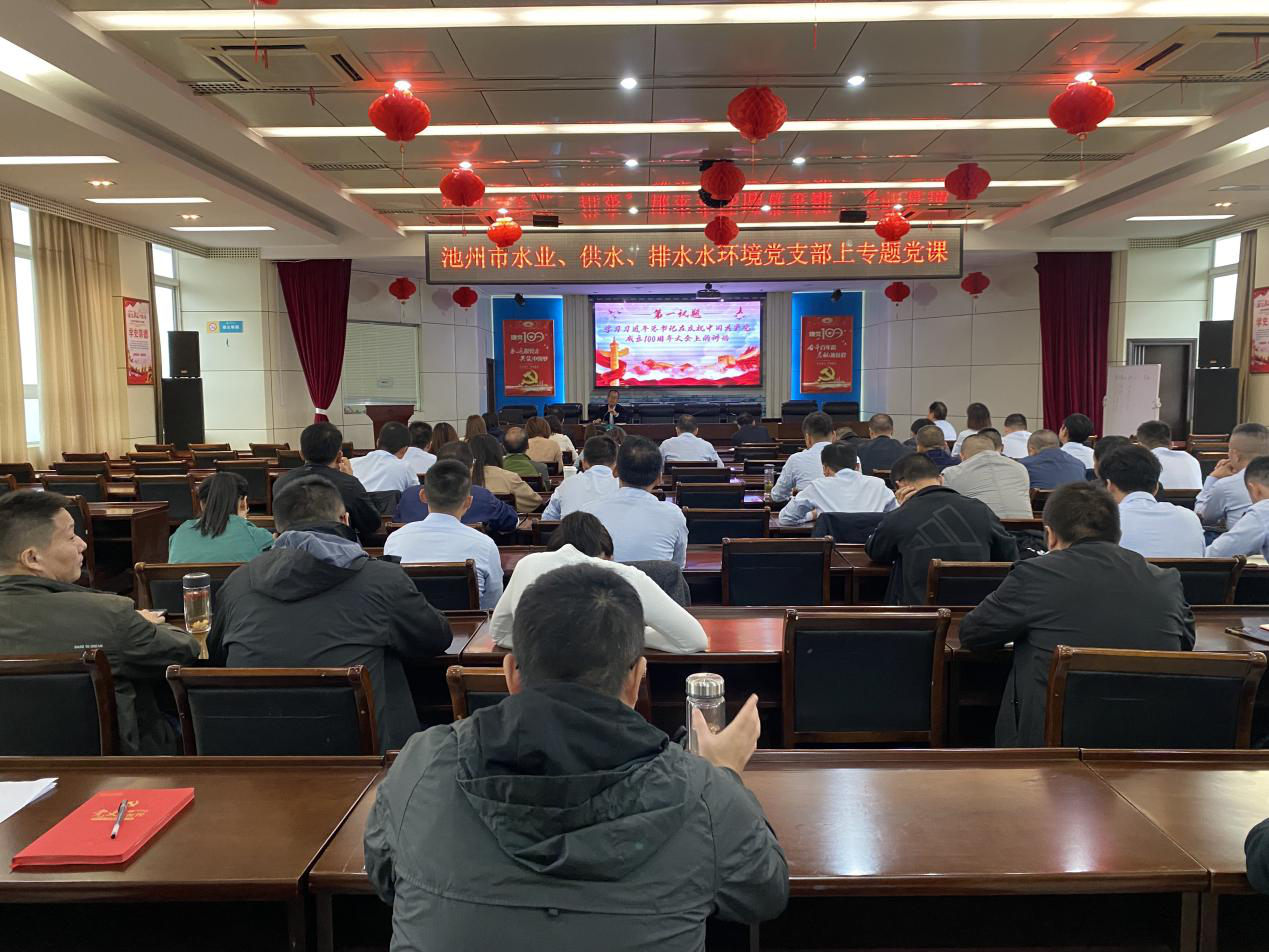為進一步推進黨史學(xué)習(xí)教育走深走實,10月14日下午,池州水業(yè)、供水、排水水環(huán)境黨支部聯(lián)合開展深水黨!刂荽笾v堂黨史系列黨課活動。三家黨支部全體黨員、發(fā)展對象、積極分子近百人參加黨課。