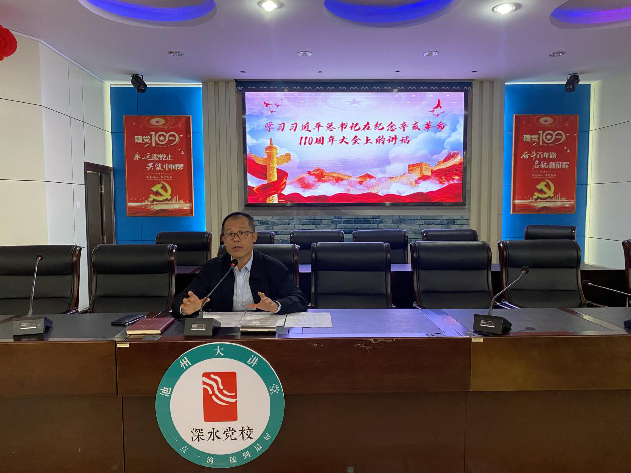 首先,由池州供水黨支部書記、供水、排水、水環(huán)境公司董事長楊觀樂帶領(lǐng)全體參會人員學(xué)習(xí)《習(xí)近平總書記在慶祝中國共產(chǎn)黨成立100周年大會上的講話》《習(xí)近平總書記在紀念辛亥革命110周年大會上的講話》《池州市第五屆黨代會精神》。