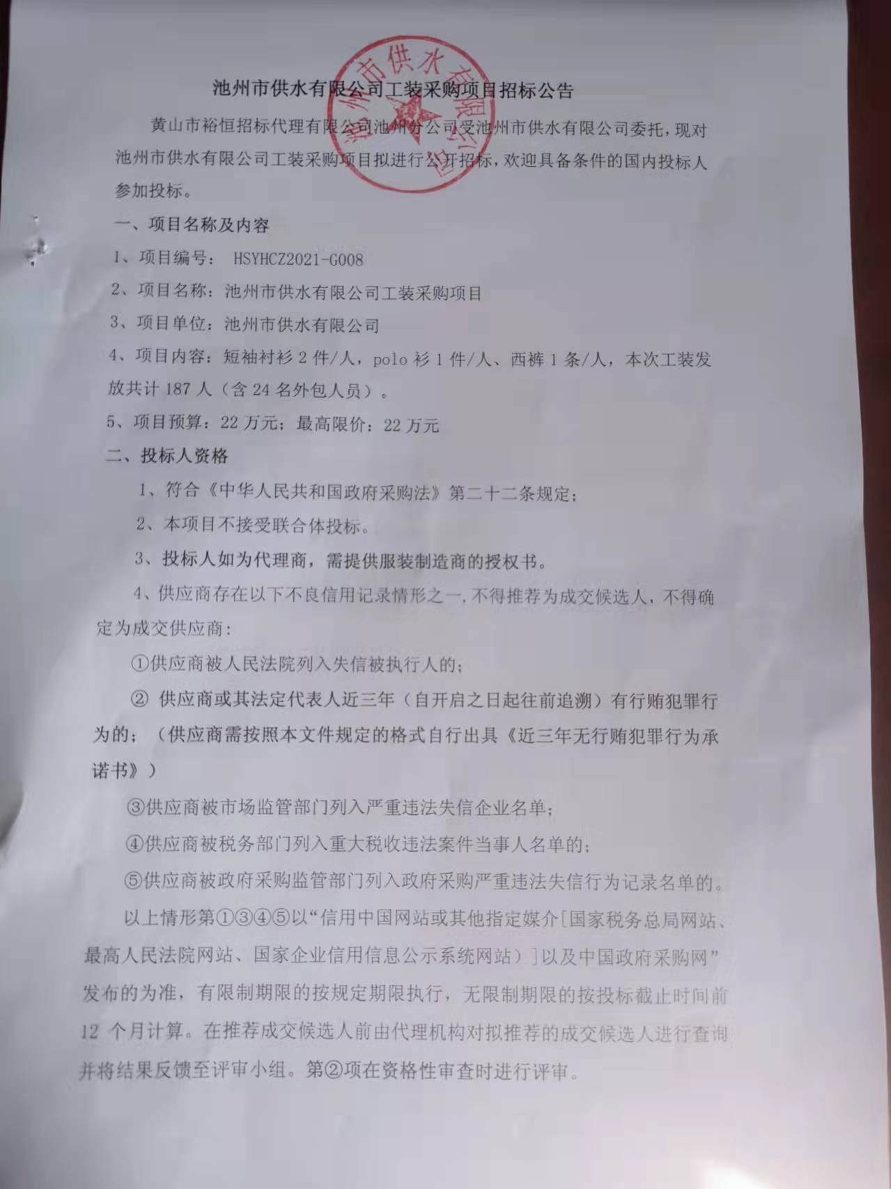 | 池州市供水有限公司工裝采購項(xiàng)目招標(biāo)公告 | |