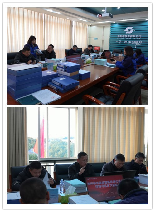 在本次評估首次會議上,公司董事長楊觀樂采用PPT的形式從公司簡介、項目實施情況、建設成效及下一步工作計劃等方面匯報了試點建設情況。隨后專家組成員在公司領導的陪同下查看了水質(zhì)監(jiān)測公司、江口水廠等部門,最后在三樓會議室內(nèi)詳細檢查了標準化建設近2年來的資料并與工作人員就相關細則進行了交流溝通。