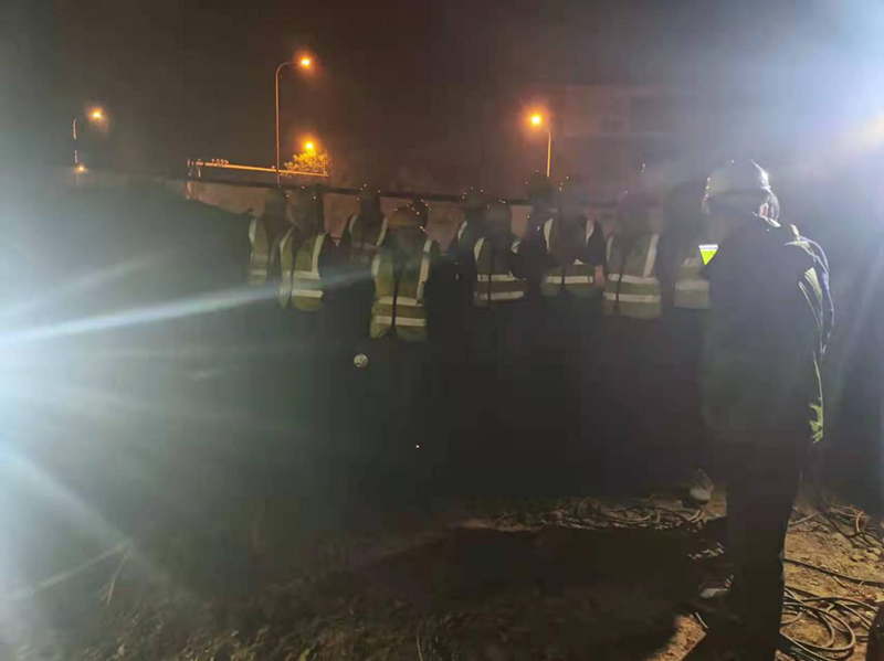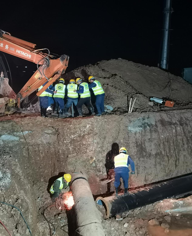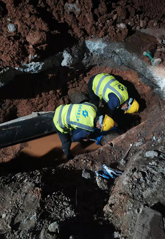 2021年12月14日凌晨一點(diǎn),寒風(fēng)吹拂,清溪大道與牧之路交叉處施工現(xiàn)場燈火通明,新建DN500球墨鑄鐵管的碰頭施工仍在繼續(xù)。江南集中區(qū)企業(yè)眾多,為了不影響正常供水,本次施工被安排在晚上11點(diǎn)之后進(jìn)行,公司負(fù)責(zé)人和技術(shù)人員全部到場,全程跟蹤施工過程,確保不出現(xiàn)任何問題,直到凌晨2點(diǎn)半施工結(jié)束。