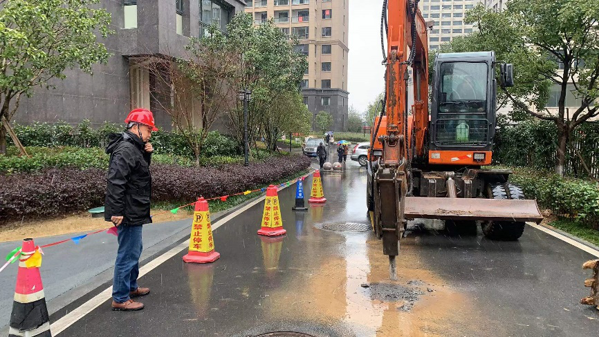 為解居民用水之憂,搶修班組顧不上吃飯,一直在現(xiàn)場進(jìn)行準(zhǔn)備工作。“今天氣溫比較低,加上小區(qū)內(nèi)部管線錯綜復(fù)雜,給機(jī)械作業(yè)、破土作業(yè)等造成了難度,也給搶修工作帶來了一定困難。我們現(xiàn)在準(zhǔn)備工作做得越充足,后續(xù)搶修就越快,就能以最快速度恢復(fù)居民正常用水。”搶修隊(duì)隊(duì)長王軍解釋道。