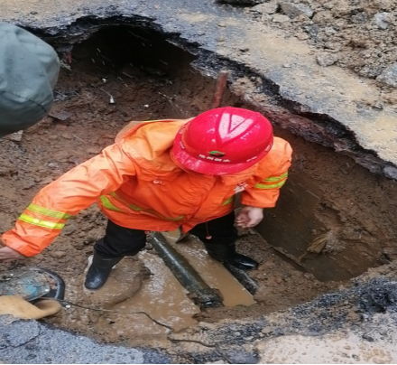 當(dāng)天10時,供水客服熱線接到電話,獲悉清溪凱旋門小區(qū)地面有大面積積水,疑似自來水管線爆裂。搶修單派發(fā)后,管網(wǎng)部搶修班組立即行動,副部長尤勇勝親自帶隊(duì),第一時間趕赴現(xiàn)場,憑借多年的探漏搶修經(jīng)驗(yàn),尤勇勝和搶修隊(duì)員僅通過四個聽漏點(diǎn)便精準(zhǔn)確定滲漏位置。由于漏水量尚在可控范圍內(nèi),且即將迎來用水高峰期,為不影響居民正常用水,搶修組結(jié)合現(xiàn)場情況,決定延后搶修時間,并制定了先部署、避高峰、短停水、急施工的搶修方案,確保后續(xù)施工安全進(jìn)行。