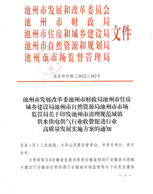 供氣行業(yè)收費,優(yōu)化營商環(huán)境,現(xiàn)將《池州市清理規(guī)范城鎮(zhèn)供水 供電供氣行業(yè)收費促進行業(yè)高質量發(fā)展實施方案》印發(fā)給你們, 請認真組織實施。