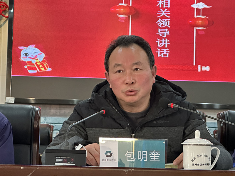 最后,上級主管部門領(lǐng)導(dǎo)包明奎主任對公司2022年的工作給予了充分肯定,對獲得表彰的先進(jìn)集體和個人表示熱烈祝賀,對池州供水這個優(yōu)秀集體勇于奉獻(xiàn)和敢于拼搏的精神表示極大的嘉許,并提前祝全體供水人新春快樂!他指出,供水公司能克服重重困難,2022年取得如此驕人的成績,實(shí)屬不易,也為2023年爬坡提速提供了堅實(shí)基礎(chǔ)。他要求池州供水公司全體干部職工,應(yīng)保持不屈不撓、堅毅不拔的精神,繼續(xù)譜寫新輝煌。一要堅持人民至上,政治引領(lǐng),著力解決人民群眾難點(diǎn)、痛點(diǎn)問題;二要堅持問題導(dǎo)向,全力以赴,全面提升服務(wù)質(zhì)量;三要堅持持續(xù)發(fā)展,穩(wěn)中求進(jìn),奮力提升供水保障能力;四要堅持生命至上,安全發(fā)展。