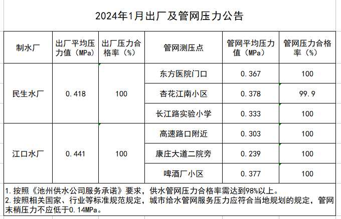 | 2024年1月出廠及管網(wǎng)壓力公告 | |