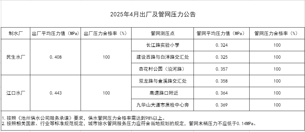 | 2025年4月出廠及管網(wǎng)壓力公告 | |