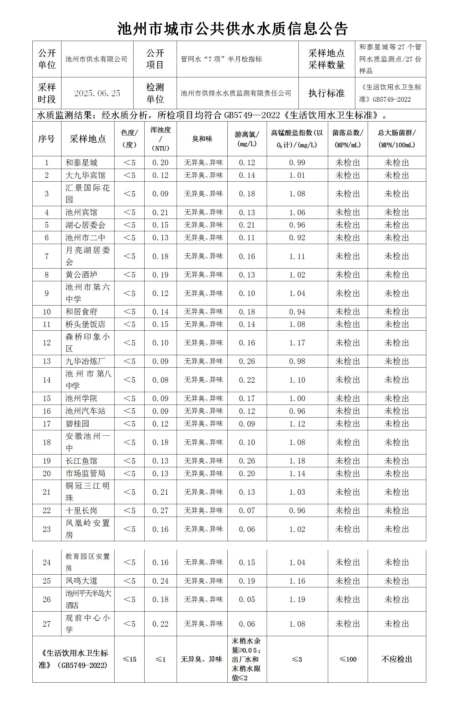 | 池州市城市公共供水水質(zhì)信息公告管網(wǎng)水“7項”半月檢指標6-2 | |