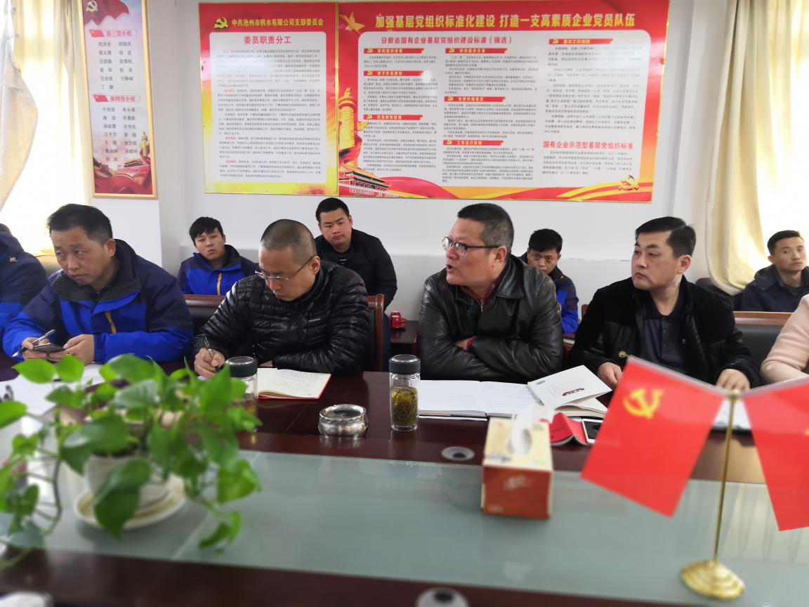 2018年3月21日,池州市供水有限公司召開全體黨員大會,深入學(xué)習(xí)兩會精神,對貫徹落實兩會精神進行部署。黨支部書記、公司董事長鐘誠同志和建投黨委委員、公司總經(jīng)理吳小平同志參加了會議。