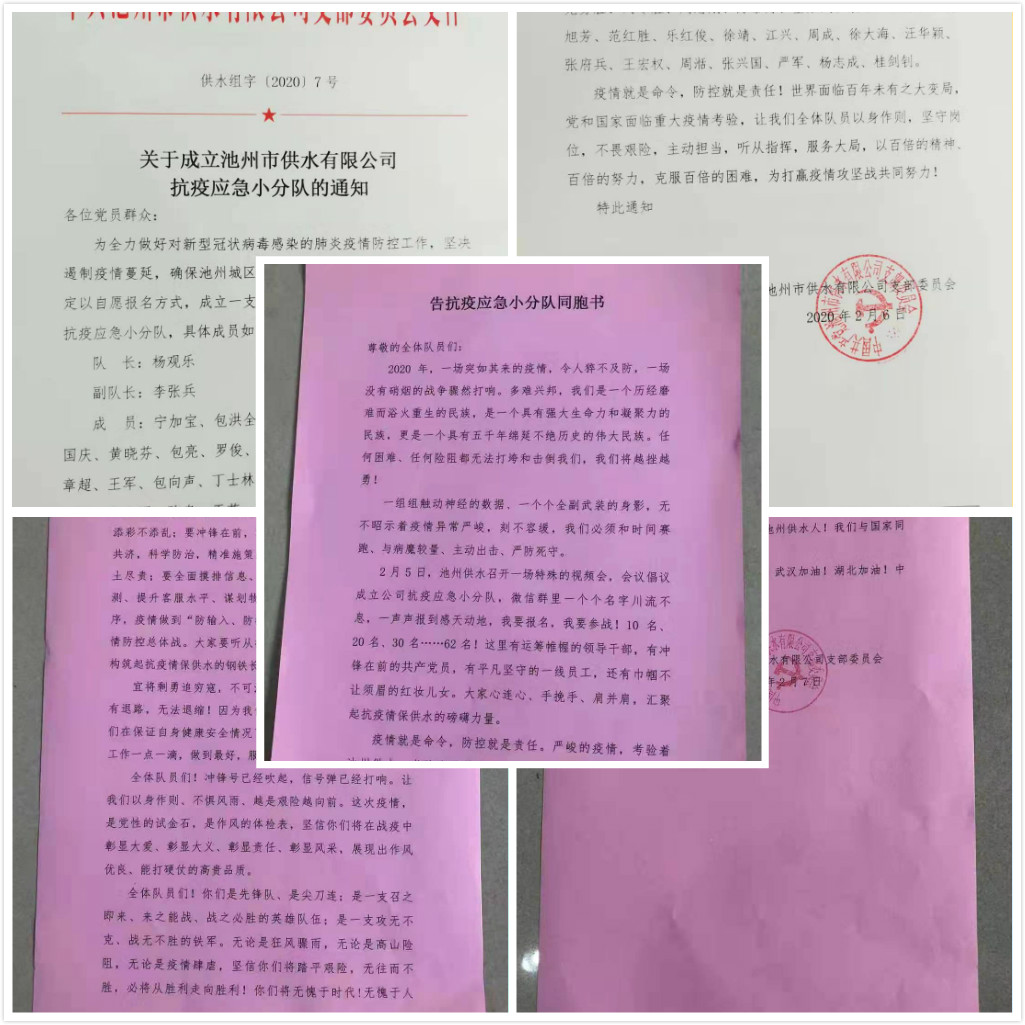 | 抗疫情 保供水 你我共奮戰(zhàn) ——池州市供水有限公司黨員突擊隊(duì)迅速集結(jié) | |