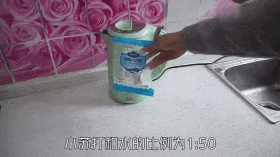 小蘇打除水垢:在用水壺?zé)畷r(shí),放一小匙小蘇打(比例為1:50),燒沸幾分鐘,水垢即除。