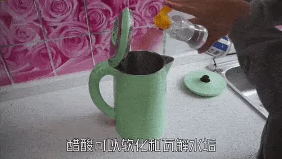 醋除水垢:如燒水壺有了水垢,可將幾勺醋放入水中,燒一段時(shí)間后水垢即除。