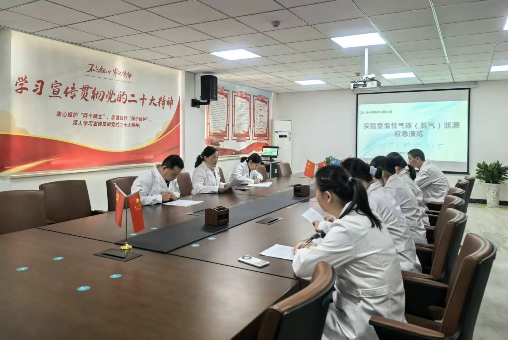 2025年11月20日上午,公司在實驗室區(qū)域組織開展了實驗室惰性氣體(氮氣)泄漏應急演練,旨在全面提升公司應對突發(fā)氣體泄漏事件的應急處置能力,增強全體水質(zhì)檢測人員的安全防范意識。本次演練以“安全第一、貼近實戰(zhàn)、統(tǒng)一指揮、重點突出”為原則,模擬實驗室氣瓶間氮氣瓶閥門接口處生料帶老化導致泄漏的緊急場景,全面檢驗《池州市供排水水質(zhì)監(jiān)測有限責任公司實驗室惰性氣體泄漏應急預案》應急響應機制的可行性與有效性,確保在真實事件中能做到迅速、有序、高效響應,保障生命財產(chǎn)安全。